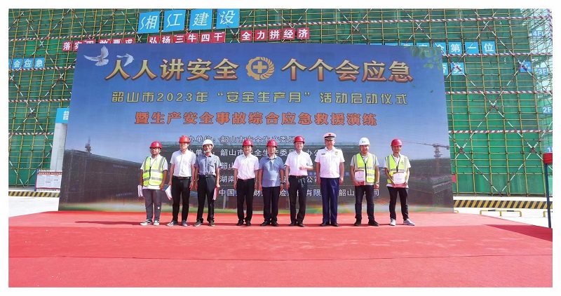 5月29日,韶山市2023年“安全生產(chǎn)月”活動(dòng)啟動(dòng)儀式暨生產(chǎn)安全事故綜合應(yīng)急救援演練活動(dòng)在湘江公司韶山紅色培訓(xùn)教育基地一期工程項(xiàng)目工地舉行。韶山市人民政府常務(wù)副市長(zhǎng)、韶山市安委會(huì)副主任賀樹峰、韶山市消..